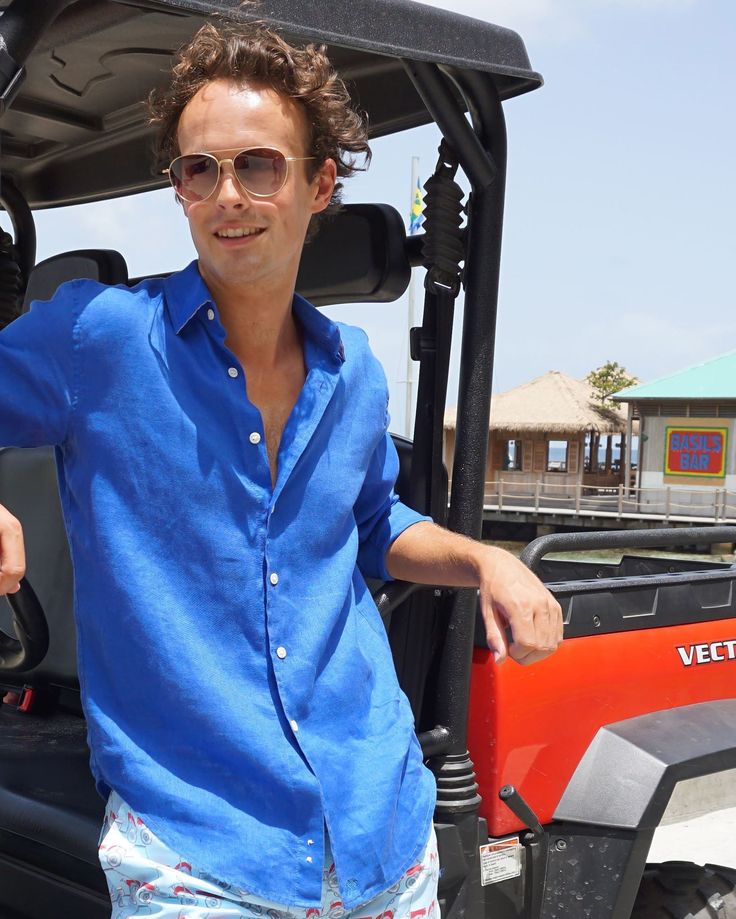 Men’s regular fit linen shirt Royal Blue